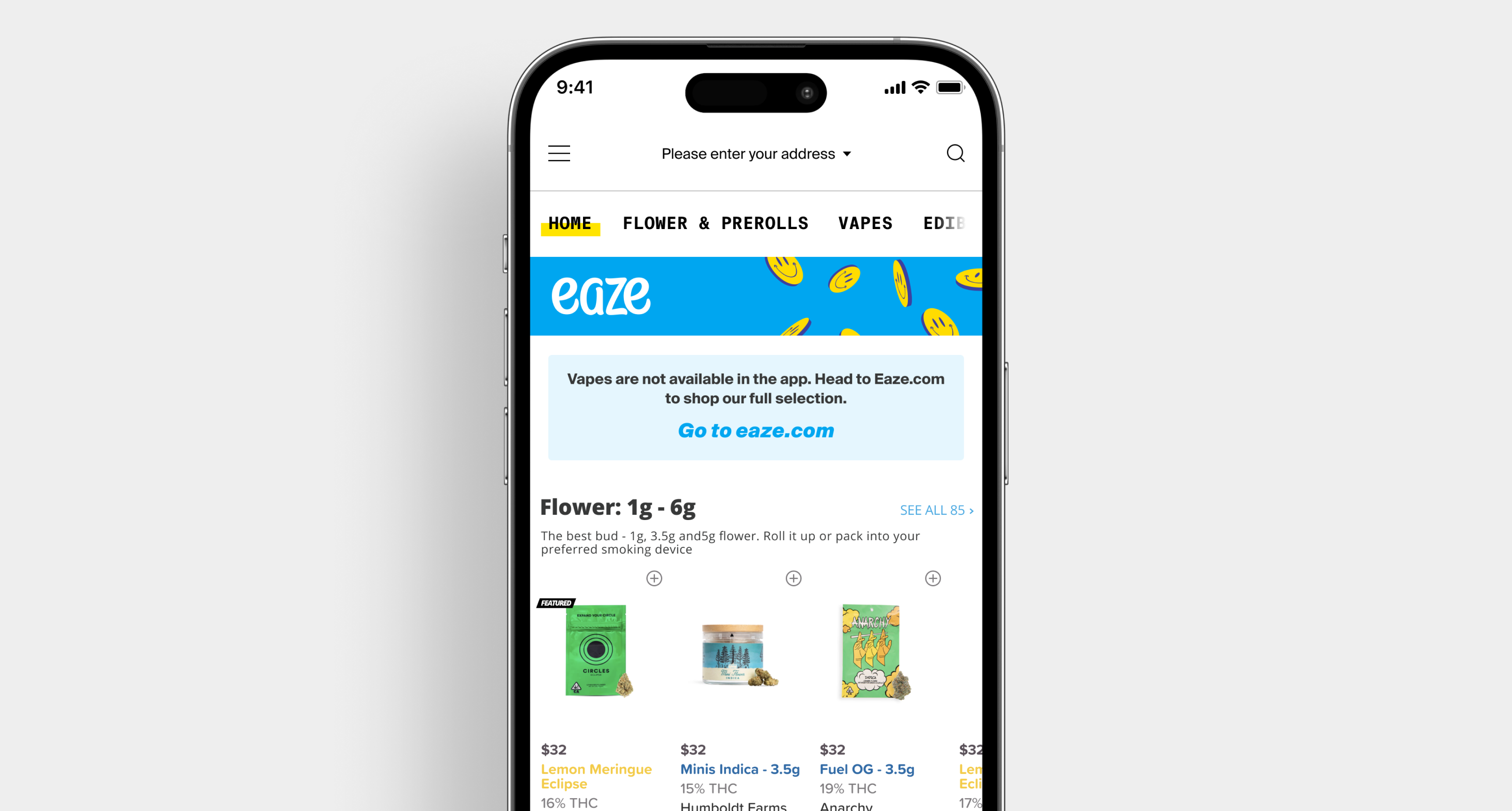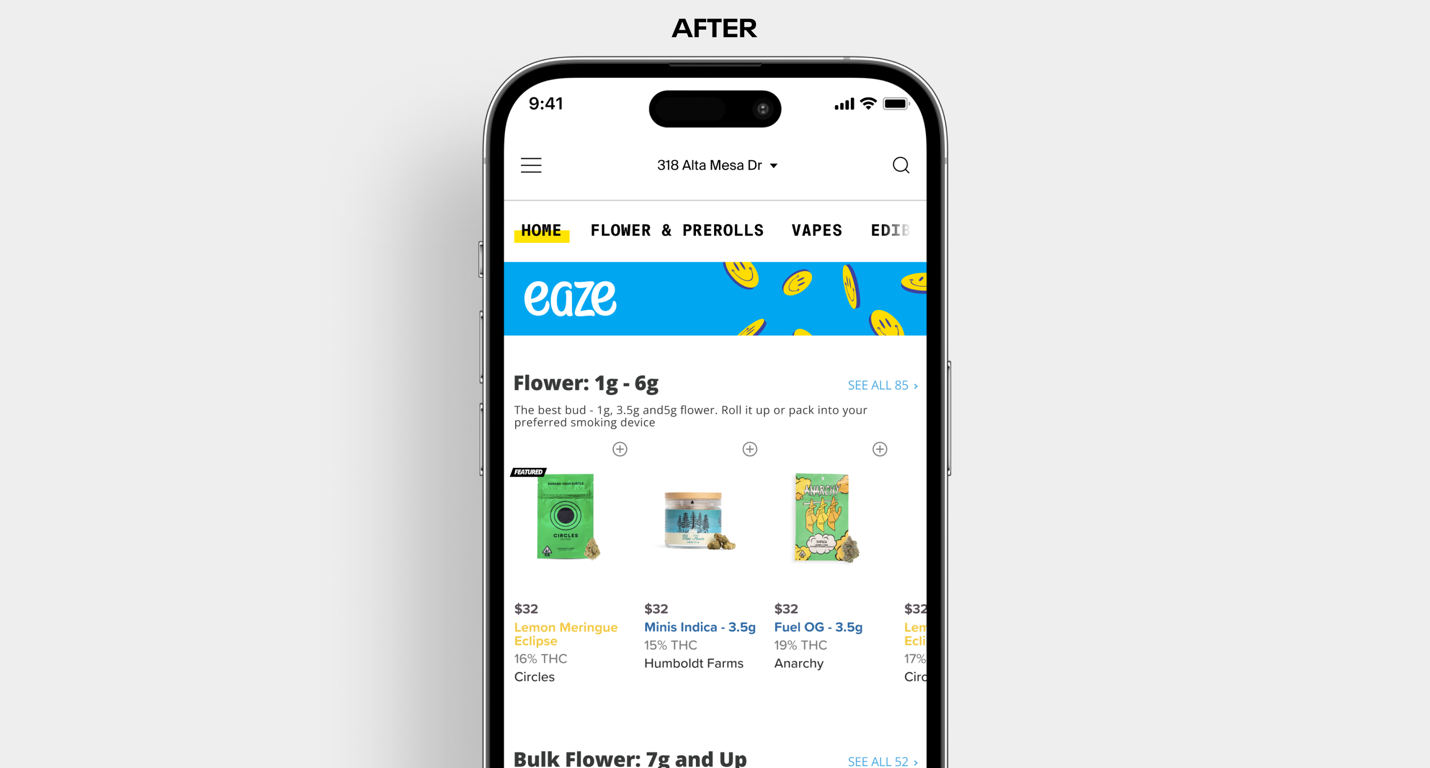 Solution - We introduced targeted in-app banners directing users to the mobile web experience, where vape purchases are allowed. We kept the vape category tab in place, but tapping it now opens a modal that clearly guides users to Eaze.com to complete their order.