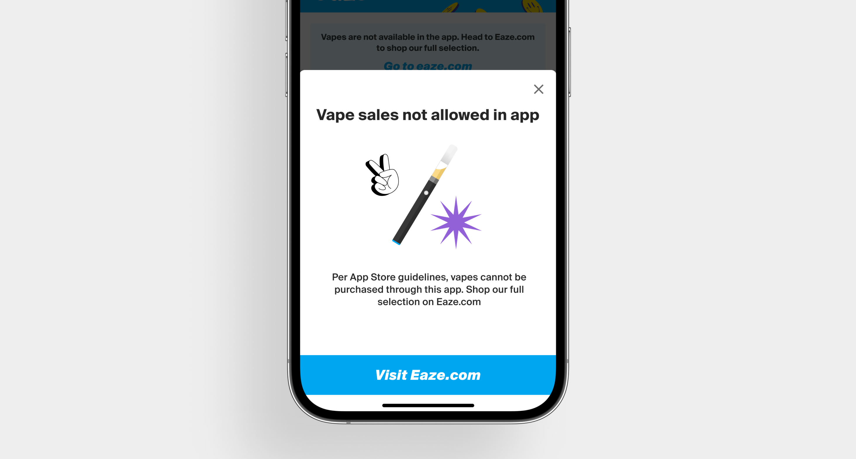 Problem - Apple's App Store policies prohibit selling vape products within native iOS apps. Since vapes are Eaze's top-selling category, iOS users looking for them consistently hit a dead end and abandoned their orders.
